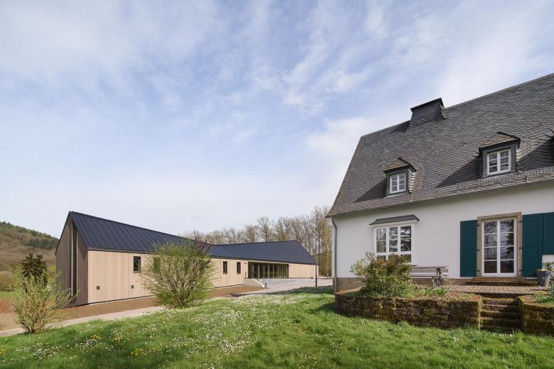 Der Neubau des Forstamtes, genannt „Meulenwaldhaus“, wurde als Ausbildungsstätte und Erweiterungsbau in Holzbauweise in Trier-Quint errichtet. Zusammen mit dem Altbau gruppiert sich das parallel zu Straße und Hang ausgerichtete Gebäude um eine neu entstandene, hofartige Situation. Der Baukörper wurde so geschickt in das Gelände eingeschoben, dass es vom Wald kommend als eingeschossiges und vom Tal aus als zweigeschossiges Gebäue wahrgenommen wird. Mit seiner Holzfassade, dem windschiefen Satteldach und der zurückhaltenden Farbgebung fügt sich der Neubau in den Naturraum ein.