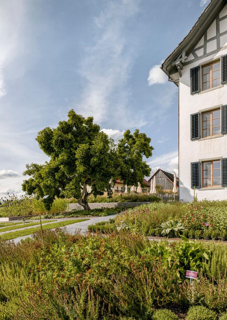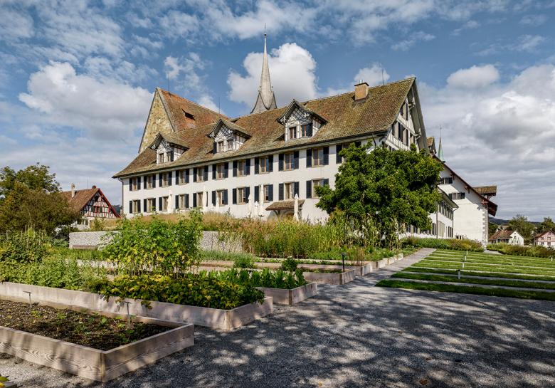 Das herausragende Ensemble ist eingebettet in eine sanfte Hügellandschaft und bietet einen beeindruckenden Ausblick in die Alpen. Um diesem baulich und topografisch vorgegebenen Rahmen gerecht zu werden, wurden die wertvollen Gärten zurück ins Innere der Klostermauer geholt und von den umgebenden Feldern und Wiesen abgehoben. Auch landwirtschaftliche Gebäude und Parkplätze werden in einer weiteren Etappe ausserhalb der geschützten Anlage angeordnet. Im Inneren ist der Kontrast zwischen der umgebenden freien Landschaft und den introvertierten, gepflegten Gärten des ehemaligen Klosters wieder erlebbar. Mit einer im Gesamtkonzept vorgesehenen Vervollständigung der Klostermauer aus dem 18. Jahrhundert gelingt eine klare bauliche und atmosphärische Trennung des inneren Klosterareals von den landwirtschaftlichen Nutzungen ausserhalb der Mauern.