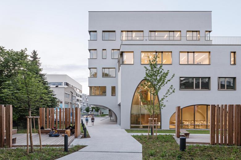 The Paracelsus Medical Private University (PMU) in Salzburg was founded in 2004. In 2017, the curriculum was expanded to include the study of pharmacy. The new institute building for pharmacy (House D) represents a continuation of the north-south directed volumes of the buildings of the STADWERK Life Sciences Campus area. The new city body thus consolidated, with the Institute of Pharmacy as the keystone, provides a connection along Gaswerkgasse to Mülln, where a recognisable connection between Salzburg's old town and Lehen is established across the railway embankment.