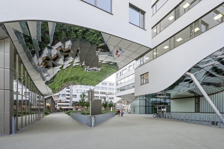 Aus der vormals urbanen Industriegegend im Stadtwerke-Areal in Salzburg Lehen wurde eine neue Identität als Wissenschaftsquartier entwickelt. Das Ensemble im STADTWERK Baufeld Mitte umfasst vier Häuser: die Paracelsus Medizinische Privatuniversität (PMU), ein Laborgebäude, ein Verwaltungsgebäude mit Arztpraxen und ein Bürohaus.