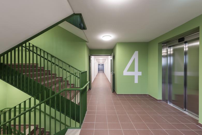 Sowohl die Aufteilung in kleinere Einheiten als auch der Anschluss an noch größere Einheiten sind in der Wohnanlage also vorgesehen. Beliebige Anpassungen für Ordinationen und Büros unterschiedlicher Nutzung sind ebenso problemlos möglich. Die daraus resultierende Flexibilität stellt auch im Sinne der Nachhaltigkeit eine wesentliche Qualität der Gestaltung dar.