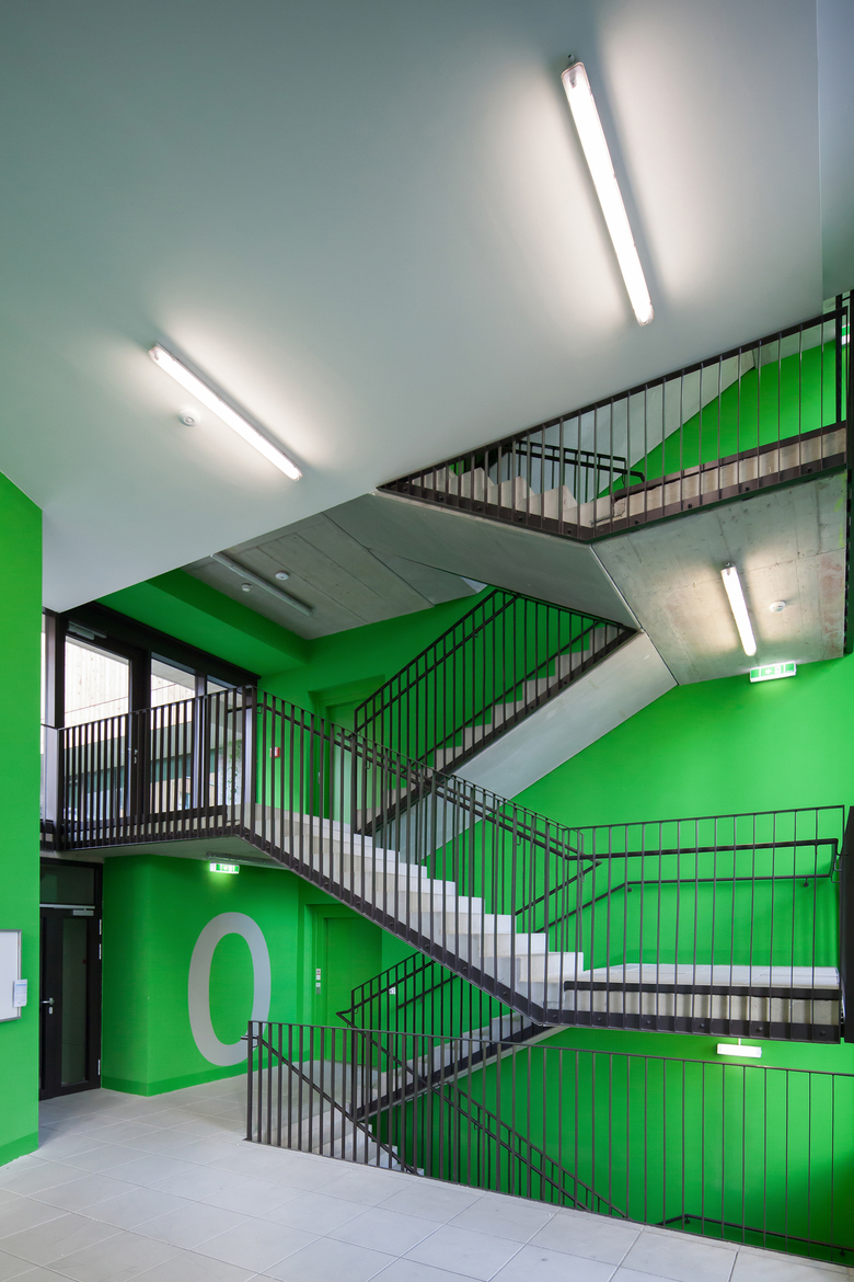 A sequence of parallel building volumes differentiated in terms of scale utilises the large building plot D12 in the south-eastern part of the Seestadt Aspern. The complex with a total of 213 apartments and eight shops apparently consists of a group of clearly recognisable individual timber houses in the form of slender, compact individual volumes.The staggered layout creates different kinds of courtyard-like spaces and a variety of visual relationships. The various parts are connected to each other by three rows of access decks that run in a north-south direction. These three circulation routes offer a varied spatial experience provided by a sequence of light-flooded staircases, internal corridors and open access decks onto which communal terraces are docked. The serial, linear basic structure offers great flexibility in laying out very different types of apartments and consequently allows a good mix of residents. The apartment floor plans are conceived flexibly. They can be altered later in a variety of ways. Although they have an excellent energy balance the buildings still open generously to the outside. Combined with the use of timber as a construction material this gives the entire complex both lightness and depth.