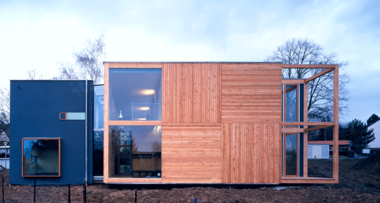 Um den wertvollen Außenbereich möglichst großzügig zu belassen, wurde das Gebäude 2-geschossig geplant. Innenräumlich eröffnen sich durch die Zweigeschossigkeit unterschiedliche Raumhöhen und Proportionen sowie optische und akustische Verbindungen zwischen den Ebenen, die in einem 1-geschossigen Kindergarten so nicht möglich wären.