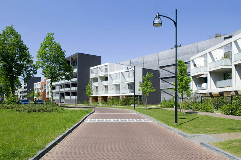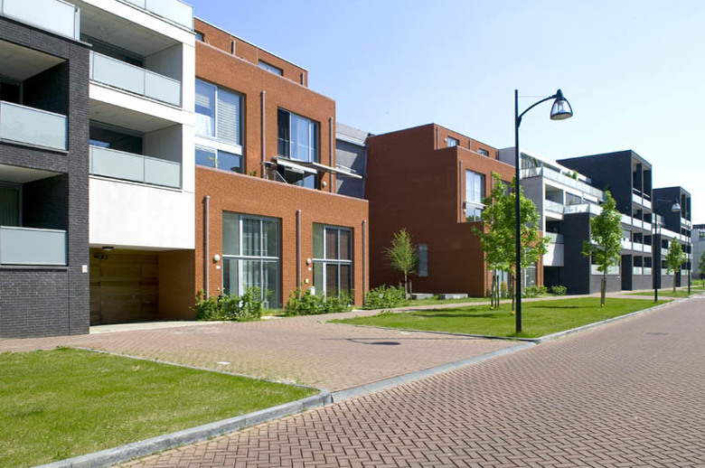 The sound wall forms the backbone of an alternating arrangement of housing types with different widths in facades, varying heights of terraces, houses that suddenly emerge from the row, … This provides a diverse and playful image with an emphasis on individuality.