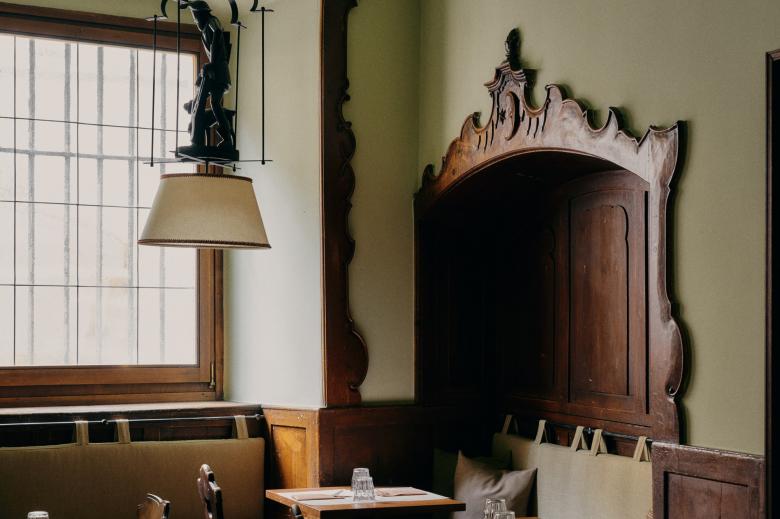 Interior Design der Pizzeria beim Parkhotel Mondschein in Bozen.