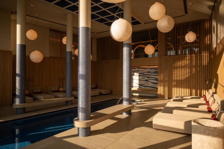 Interior Design des neuen Innen- und Außenpools und der Fitnessbereiche im Hotel Castel.