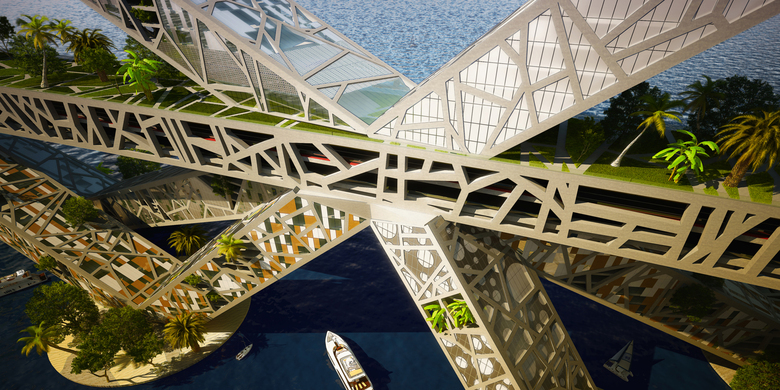 The municipal government does not have the resources to build a three-kilometer bridge and never will. By transforming its supporting structure into habitable spaces, private equity can be invited for its construction. This way, developers can acquire and sell on prime seafront real estate and the city solves one of its chief problems. Architecture as a city problem solver.