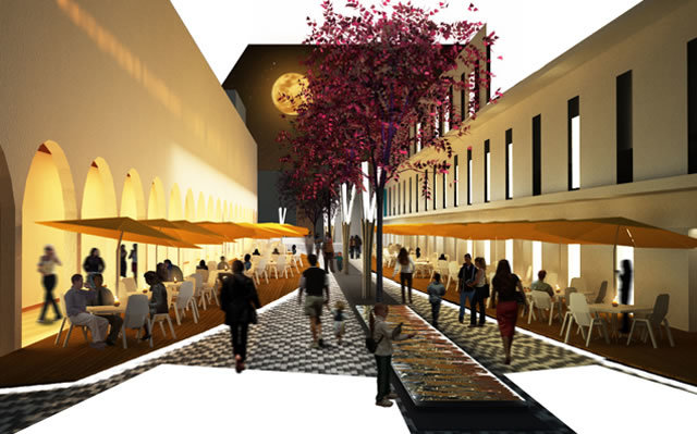 This way people would mingle in the center for greater lengths of time, making it safer at night and injecting it with life. Other significant issues that needed solving were the reduced density in the blocks surrounding the main square (we took them from one level to two and three stories) and the lack of vegetation creating an arid environment.The Master Plan for the Historic Center identifies seven specific areas and grants them a particular character and activity that distinguishes them from one another: The Gastronomic Walkway, The Commercial Avenue, The Main Square (known as the “Zócalo”), The Fountain Plaza, The White Plaza, The Access Plaza (known as “Jardín del Rico”) and Reforma Avenue. All these areas have a special vegetation palette, lighting, street furniture and pavement design as well as the precise activity they promote. Besides its aesthetic quality, the tree densification program seeks to create ample shade on the streets to promote walking since Guzman has a very warm climate almost all year round.