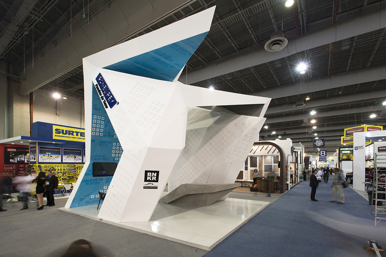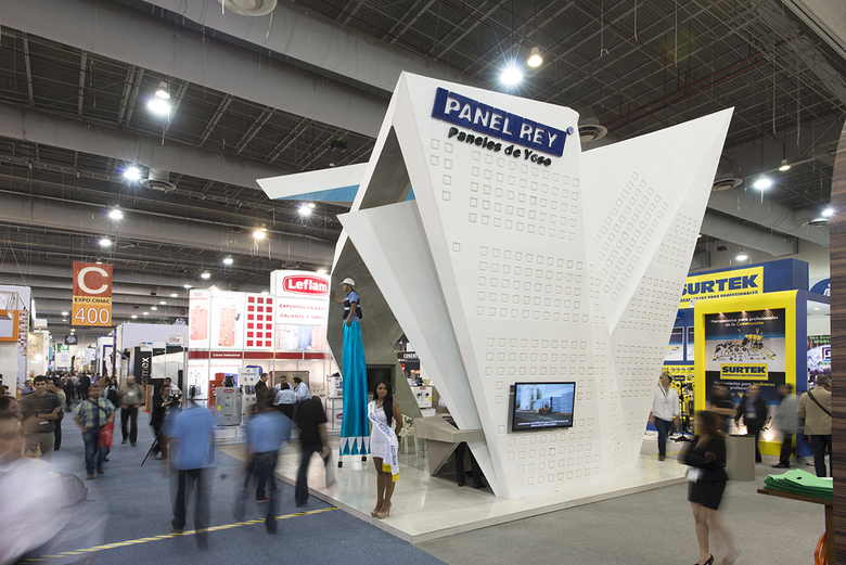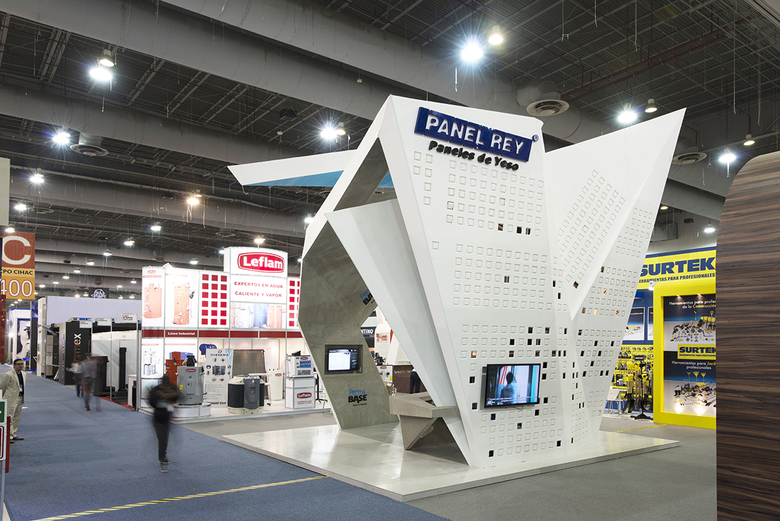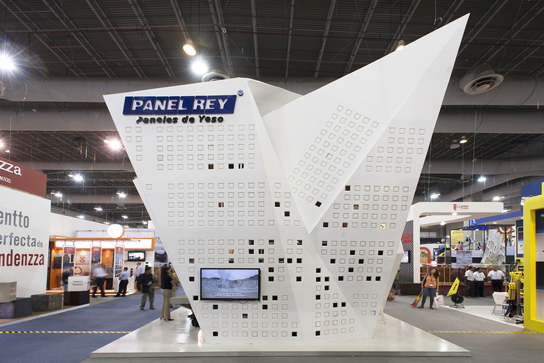Expo CIHAC is an annual architecture and construction exhibition that takes place in Mexico City and the biggest in Latin America of its kind. Every year exhibitors have the opportunity to get noticed and call for attention through the design of their stands. Some companies take advantage of it and others not. Panel Rey, the biggest gypsum panel company in Mexico, participated year after year in this exhibition but with the typical boring in-house designed stand. On the other hand, their direct competition, USG, contracted the best Mexican architects to design their stand and where always the pavilion that everybody was talking about.