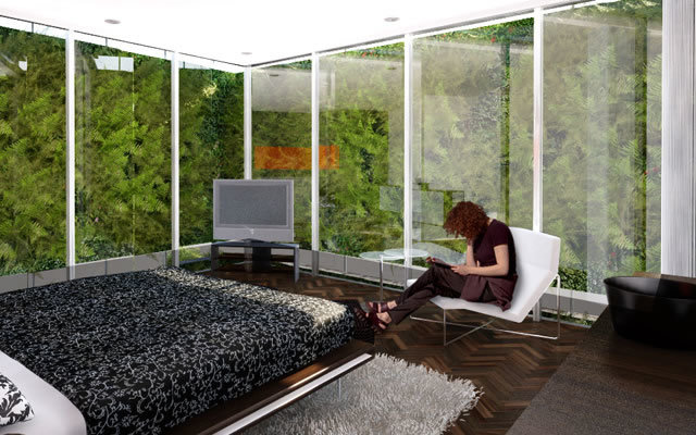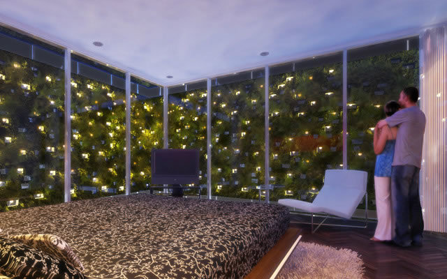 The vertical garden gives absolute privacy to the interior spaces and achieves the oxymoron “private openness”, apparently a contradiction in terms, but an ingenious solution that allows the inhabitants to have a full experience of the exterior and its natural elements without having to worry about privacy issues: nosy neighbors and prying eyes from the street.