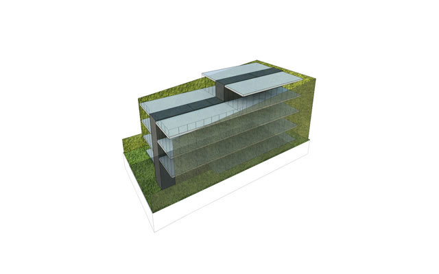 In order to take the Hejduk studies a step further we created a wall that was absolute: it served as structure, contained the elevator as well as all the staircases and enclosed the vertical shafts, water and drainage pipes and electrical conduits. It also housed the service quarters, storage and visitors restrooms.