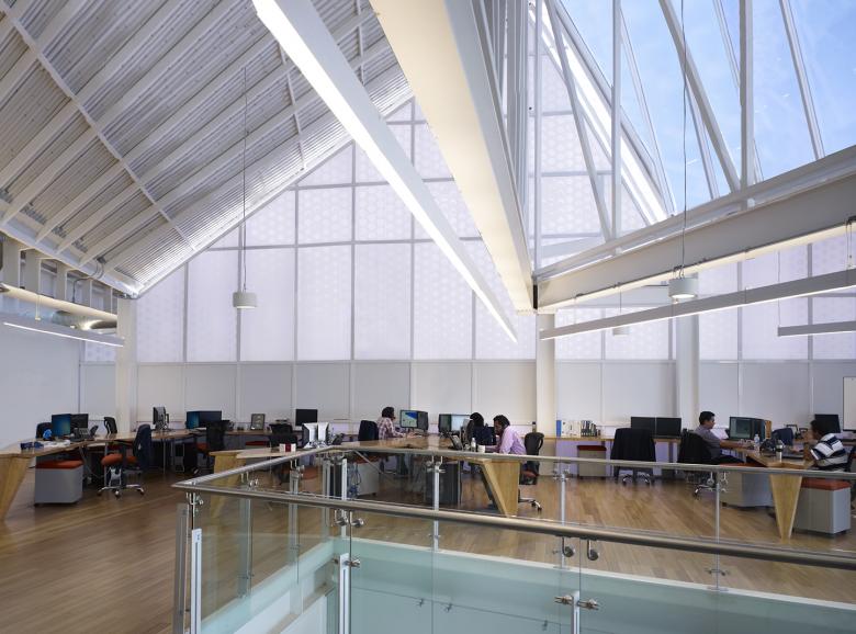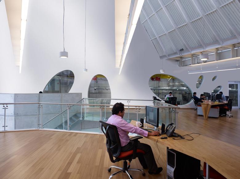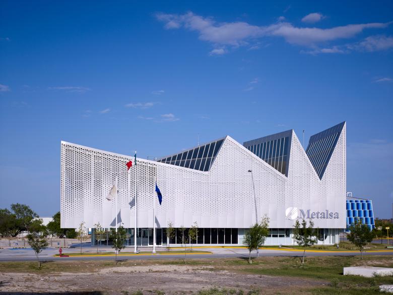 Metalsa SA began as a family-owned company, founded by Guillermo Zambrano Gutierrez in 1956 that manufactures chassis and structural body components worldwide for a variety of heavy trucks and pickups in facilities located in the USA, China, Japan and India. Today the company has manufacturing facilities located around the world and boasts several major automotive corporations as their clients, including Ford and Toyota. Site: Located in Mexico’s Research Park for Technical Innovation (PIIT), a science and technology park, which is a partnership between government, universities and the private sector to seek economic growth through technical innovation. The 1000 hectare campus is host to more than 50 research centers devoted to R&D as well as the development of technology innovation in nanotechnology, biotechnology, mechatronics and advanced manufacturing, information technology, clean energy and advanced materials development. Program: Master Planning for a 5,000 square meter research lab, office and industrial testing facility serving an automotive industry client who designs and manufactures automotive and heavy truck chassis. The first phase encompasses a total of 15,500 square feet, including 5,500 square feet of office space and 11,000 square feet of research labs and warehouse space for testing and developing prototypes. The second phase consists of an additional 5,500 square feet of office space and 34,000 square feet of research labs and warehouse space. Solution: Industrial buildings of this type are rarely a model for workplace innovation. They are typically a direct, and often nefarious programmatic response to the function inside with little consideration for the occupants needs. The approach to this project was to preserve the integrity of a high bay industrial facility and program, while providing a model environment for the users and visitors. A saw-toothed roof draws from the geometry of old factories and the surrounding Monterrey Mountains. The angled elements of the roof provide abundant natural daylight to the spaces below at the building’s northernmost elevations. By modulating space and light thru a fractured roof geometry, the building is able to maintain a rational plan to meet the rigorous requirements of the program, while providing a strong connection to the landscape both visually and metaphorically. The second major feature of the building is the perforated metal skin that clads the entire façade. The custom aluminum skin is both perforated and etched. It incorporates interplay of solid and void, orchestrating areas of both light and shadow, while limiting views into the research areas, necessary to protect proprietary trade secrets. Thus, the industrial program has been transformed from a black box environment to a light filled space with a strong visual connection to the outside. Each of these strategies and materials, exploit the potential for performance and sensibility while achieving a rich and interesting sensory and aesthetic experience. Programmatically, the building is divided into two volumes – warehouse/labs and offices functions. The upper story of the offices cantilever over the lower story to the west and is clad in a highly perforated metal skin and is the main entry facade. The lower story is mainly glazed and open to reveal portions of the research laboratory, machine room and other industrial functions not requiring visually security. From the exterior, the warehouse appears to float lightly over the mechanical and intellectual heart of the program, reversing the notion that an industrial building should be solid and protected. Rather, the building seems very open and is intended to feel vulnerable revealing parts of its inner program to public view.