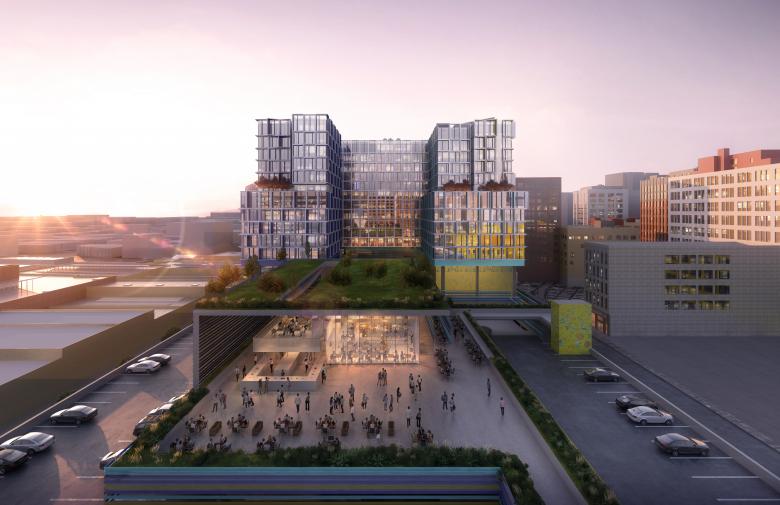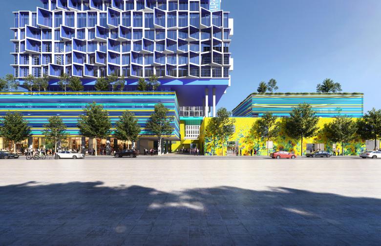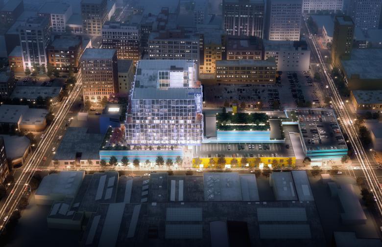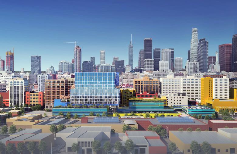 The Flower Market was founded in 1909, by Japanese-American flower growers, and harkens back to a time when the city had a significant agricultural component. The 568,000 sq. ft. $170 mil. development is scheduled to be completed in 2022 . It was first opened downtown in 1914 and then in 1923 moved to its current location at 7th and Wall Street. Ownership is through a consortium of families (a shareholder collective) that have a small stake in the business. Many of the shareholders are descended from the vendors who founded the market more than a century ago. The collective aspect allowed the Japanese American business owners to band together and have a stronger voice, and to help survive challenges such as those that occurred during World War II, when tens of thousands of Japanese Americans were placed in internment camps after the bombing of Pearl Harbor. The shareholders envision a project that will preserve and retain the historic Flower Market and also transform it for the next 100 years. The current space is a bustling marketplace where vendors sell flowers wholesale and retail, mainly in the early morning hours and consists of two two-story buildings on a nearly four-acre site. The existing buildings that they are operating out of are outdated and in need of "constant repair." Having been at the current location for almost 100 years, the facilities are in need of constant maintenance. Looking to the future, the Flower Market’s owners have embarked on a redevelopment and addition to their physical plant which entails the adaptive reuse of one building and the addition of new parking, commercial space and 323 dwelling units in a 15-story concrete frame residential tower. Next to the residential tower, the upgraded market building would have space at street level for flower vendors to continue their sales operations, plus parking and office space above that. Amenities, including a public event space, will be located on top of the renovated building’s parking space. Dwelling units consist of traditional loft-style design with open floor plans and flats; all units have views to towards the city to the north and south. The exterior of the structure is skinned in a corrugated aluminum screen which will be anodized bright blue, yellow and green, honoring the beauty of the flower itself and will create a beacon for this part of the city. The renovated concrete building will be covered in flower-themed murals. The building will be both performative (environmentally efficient) and beautiful.