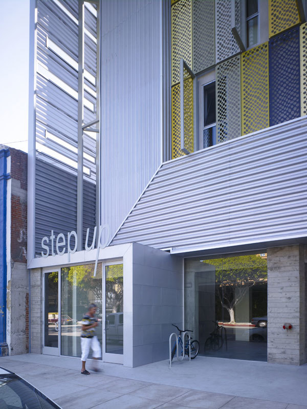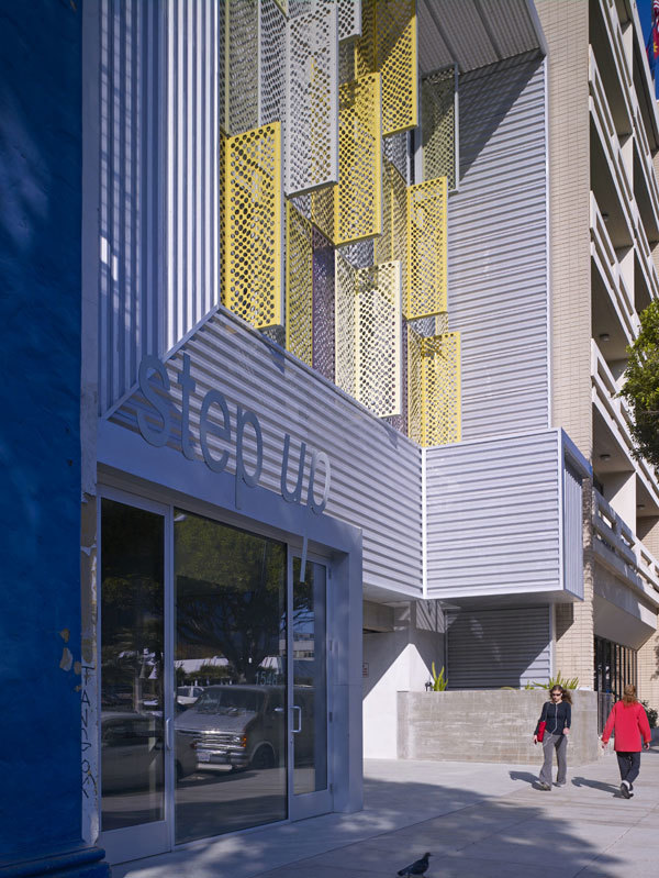 Step Up on 5th is a bright new spot in downtown Santa Monica. The new building provides a home, support services and rehabilitation for the homeless and mentally disabled population. The new structure provides 46 studio apartments of permanent affordable housing. The project also includes ground level commercial/retail space and subterranean parking.