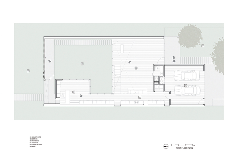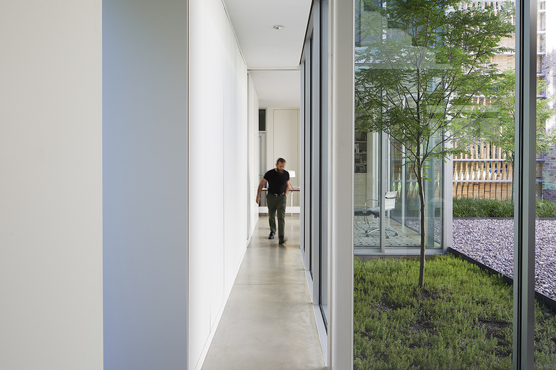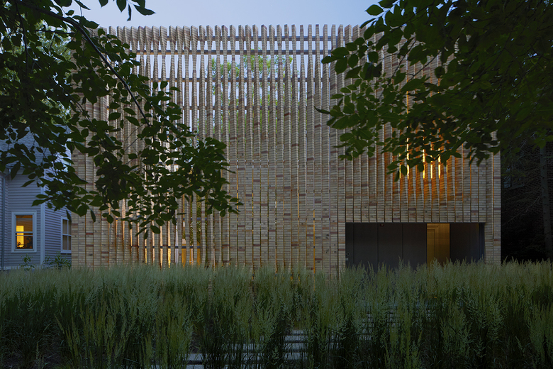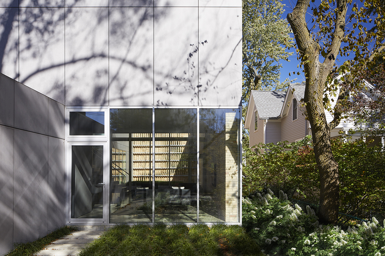 Located within a few blocks of the campus of Northwestern University in the suburbs of Chicago, this modest sized courtyard house is wrapped almost entirely in brick. Chicago “Common” brick, as it is known, was chosen because they look different from typical red bricks - a result of the geological composition of the indigenous Lake Michigan clay and the way in which it is fired. It’s variegations and irregularities made “Common” bricks unattractive, cheap and an abundant resource—a prosaic building material used in places generally obscured from the street such as side and back walls, chimney flues, and structural support behind facades.