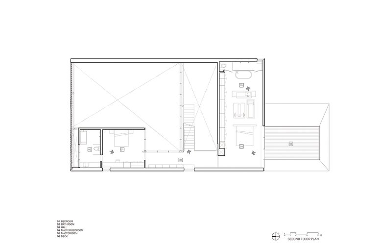 Conversely, the brick at the Thayer House is highly visible and featured as a prominent design element. The street facade is organized in vertical twisting columns to create an ever-changing pattern of opening and closing as light moves across and thru the facades. As the viewer passes by the home, the façade creates a moire-like pattern that appears to be constantly in motion. Depending on one’s location, the porous courtyard façade courtyard can appear open and welcoming while also feeling closed and private. This allows glare free daylight to penetrate into the building through glazed surfaces behind them, as well as creating a glow from within when the lights are on at night. Light seeping through the brickwork produces a shifting geometric pattern of light and shadow on the walls and floors of the rooms, circulation areas and neighboring structures that alters throughout the day.