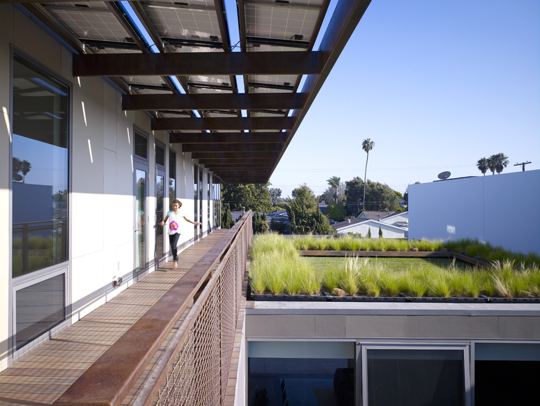 The Yin-Yang House is a net-zero energy single-family home in a quiet Venice, CA neighborhood. The design objective was to create a space for a large and growing family with several children, which would create a calm, relaxed and organized environment that emphasizes public family space. The home also serves as a place to entertain, and a welcoming space for teenagers as they seek social space with friends.