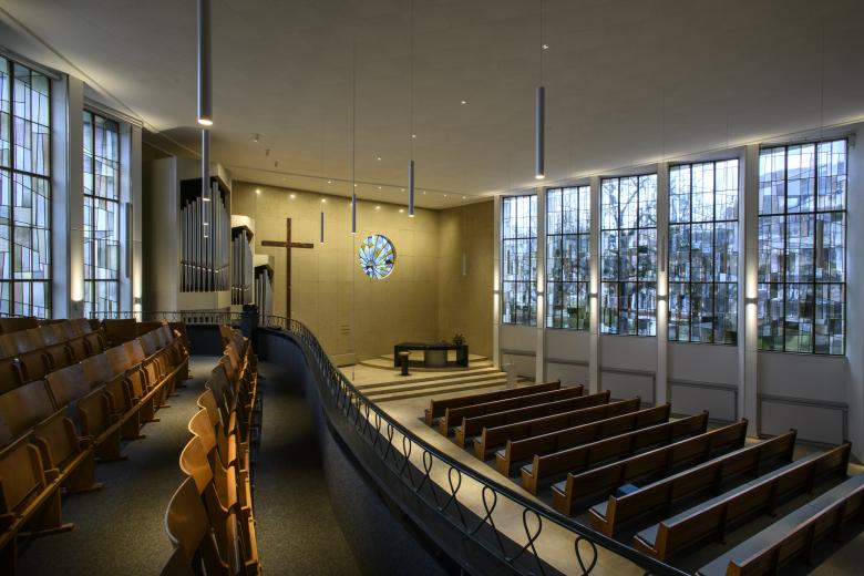 The New Apostolic Church in Hamburg-Eppendorf was built in 1955/56 to a design by architect Theo Hirte. The building, with its light-coloured clinker bricks and the implied flying roof, is typical for the modern architecture of its time. With its original seating capacity of over 1,000, the new church was intended to provide sufficient space for the steadily growing congregation founded in 1922 as well as to enable the return of the branch congregations. In the decades that followed, there were repeated innovations, with the last comprehensive modernisation taking place at the beginning of the 1970s. Since the installation of the Hüfken organ, which was inaugurated in 2002, the church hall with its good acoustics has been a much-used space for concerts, and not just by the church.