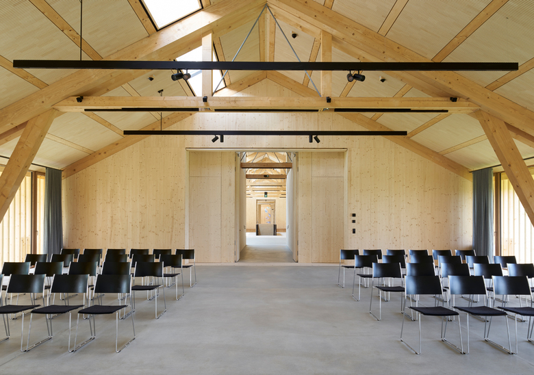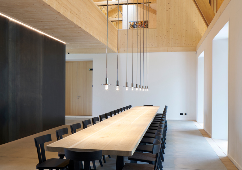 Als Architektur wählte Florian Nagler Architekten eine Holzkonstruktion, die sich an die traditionelle Bauweise der Region anlehnt, jedoch nicht volkstümlich ist. Das Beleuchtungskonzept unterstreicht diesen Gestaltungsansatz: Alle Leuchten sind minimalistisch gehaltene Archetypen, die sich dezent in das Ambiente einfügen, ohne sich dabei zu verstecken. Mehr noch: die Lichttechnik ist auf der hellen Holzkonstruktion gut ablesbar.