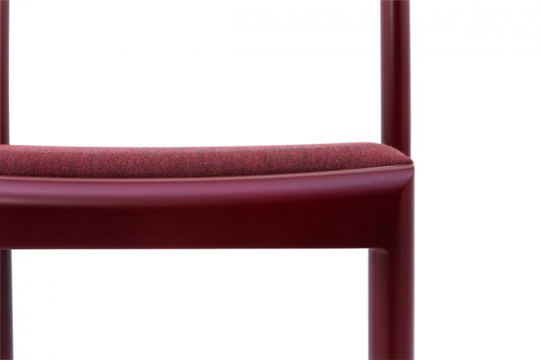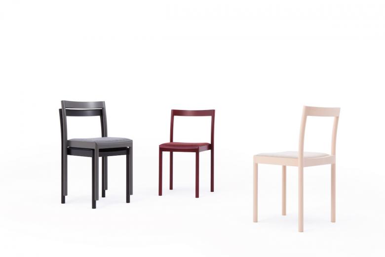 A stacking chair with a simple form and structure, with a unique smoothing effect applied to the lines and surfaces, creating an integrated form from the frame to the seat.