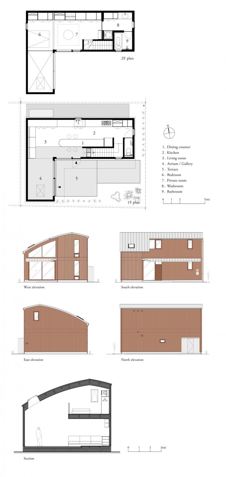 The ground floor, for example, normally functions as a living and dining room, but becomes a semi-public exhibition space during events. The dining counter, which is set higher than usual, flexibly changes its role from being a display stand for exhibitions to a serving counter for standing meals in conjunction with the kitchen. In addition, furniture such as counters and sofas were placed at the boundary between the earthen floor and the wooden flooring, so that people can use them without taking off their shoes. The house is further characterized by the fact that it was designed to support a wide variety of situations.