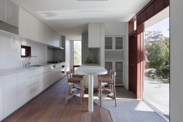 One of the requests from the client was to create a residence inspired by “red soil” and “reddish brown,” which contrasted with the surrounding green. Furthermore, the client wanted to use the house not only as a place to live, but also as a gallery-like space that is open to the community. The house is a new hub for the client, who is a merchandise buyer and a director for design in art, and was designed to be used for various public and private activities.
