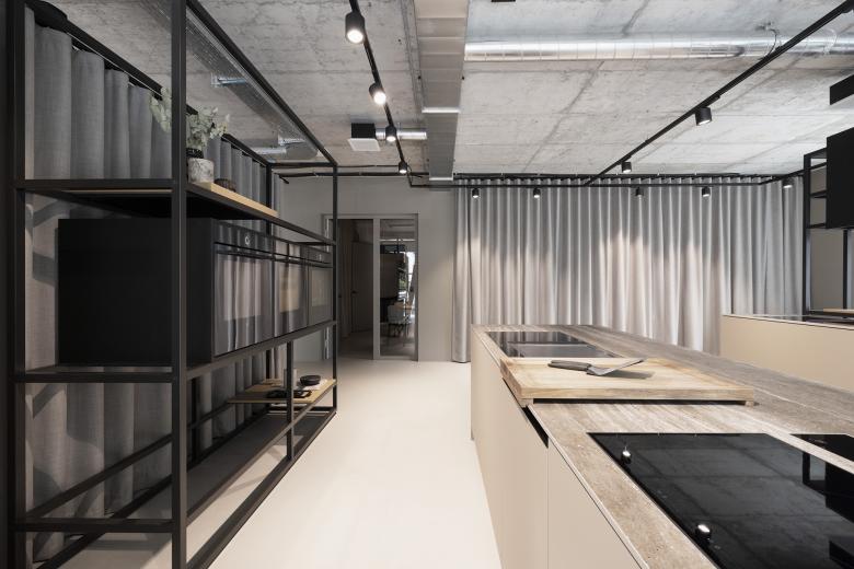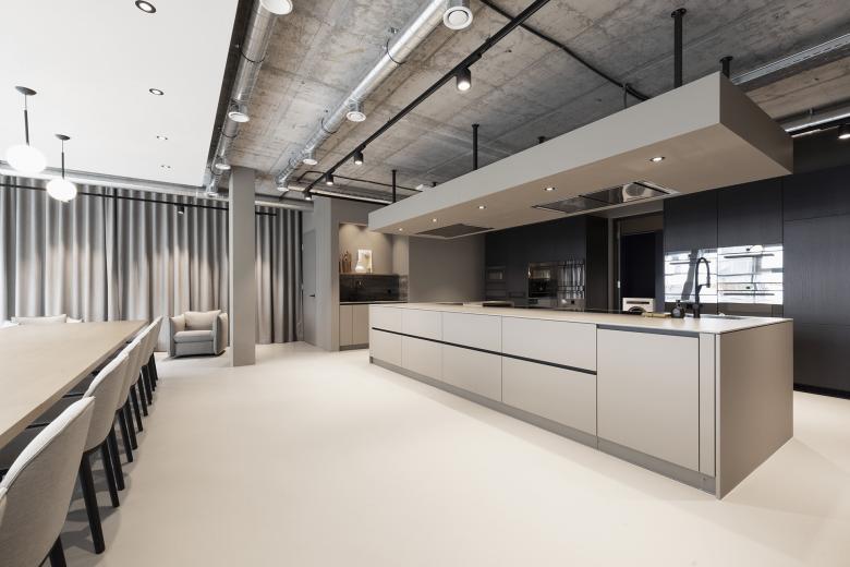 The Zugorama includes the different product worlds, a show kitchen including a dining table for up to 22 guests, a wine expertise room, the „blue room“ and separate office and meeting areas. The aesthetics, a pure and clear language of form combined with selected materials brings out the design of the appliance lines in particular.