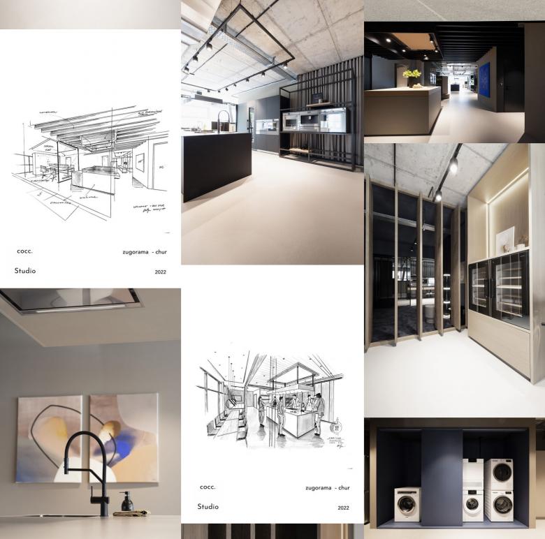 The second domestic Zugorama appears in the new corporate architecture of the tra- ditional company V-ZUG. The showroom of about 420sqm opened in spring 2022 in Chur. The details are carefully planned to support the flow and impact of the strategi- cally designed floor plan.