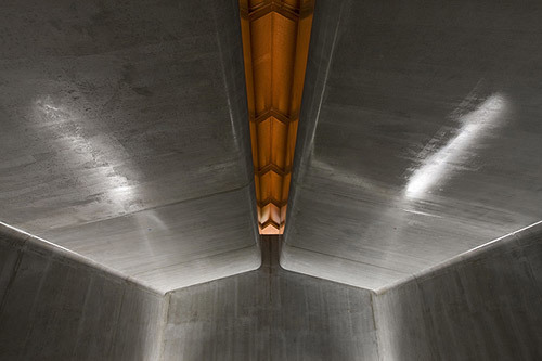 An ossuary attached to a temple. The precast concrete frame is covered with a dry stone exterior for long-term durability and fire resistance. In consideration of flood damage, the building was lifted up to allow light and wind to enter through the gaps between the floor and walls. The roof is covered with Corten steel to protect the frame and ensure ventilation. There is no insulation, glazing, air conditioning, or electrical equipment, and no caulked joints. It is a concrete and steel construction without cracks.