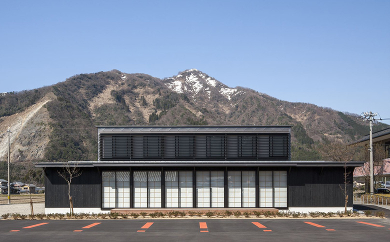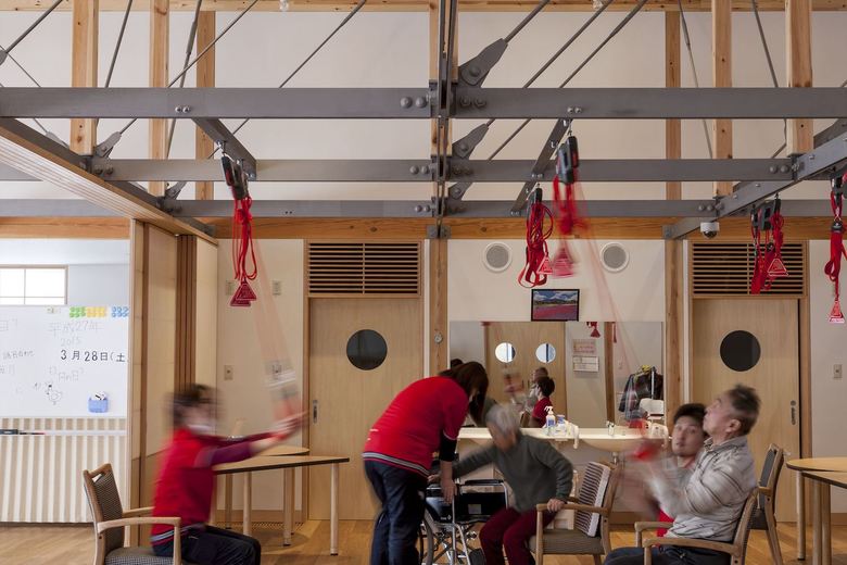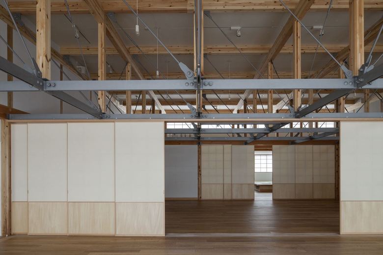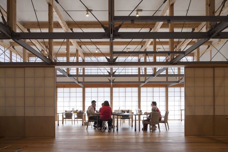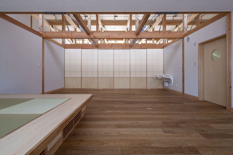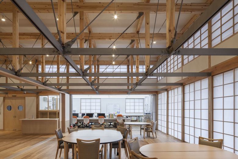 The project is a day care center for elderly adjacent to an intensive care home for the elderlylocated in a snowy area in Fukui. The pillarless space of about 12 m × 12 m is a place like a plaza. It is warm, bright and pleasant even in winter for a large space due to the hybrid structure of the wood and steel, such as a modern private house. It will become a gathering place used for not only for elderly activities but also for children's whereabouts after school and local event in the village with advanced aging.