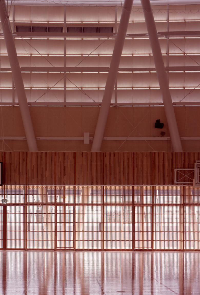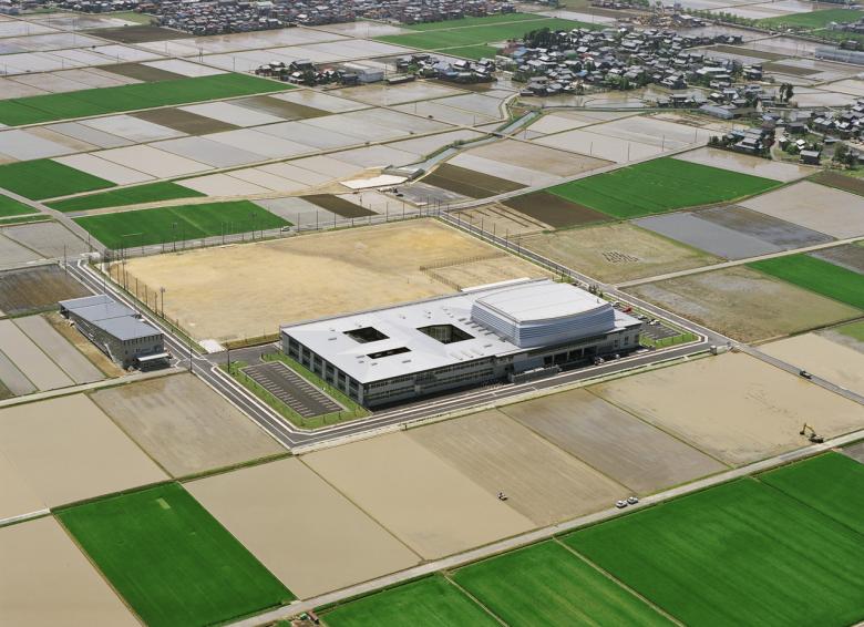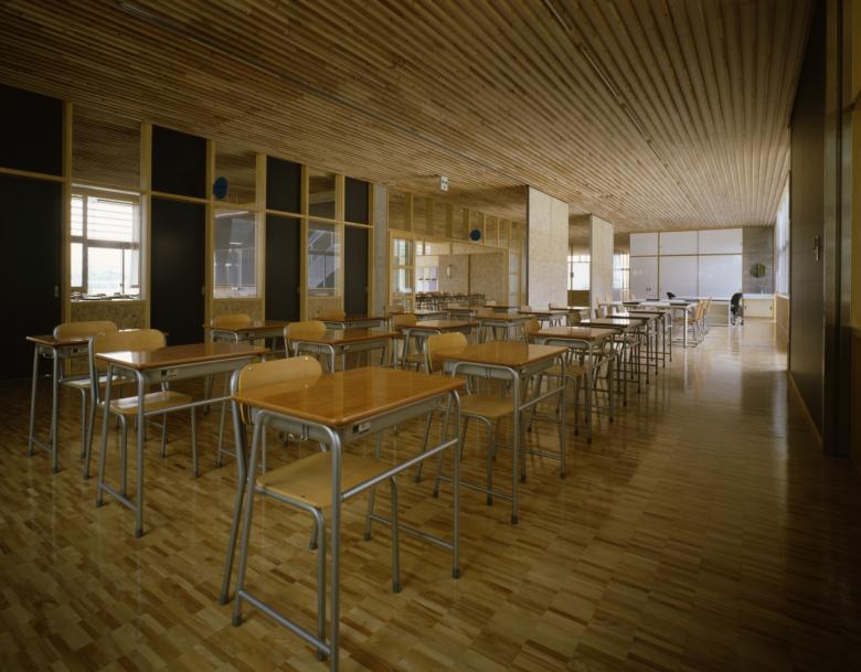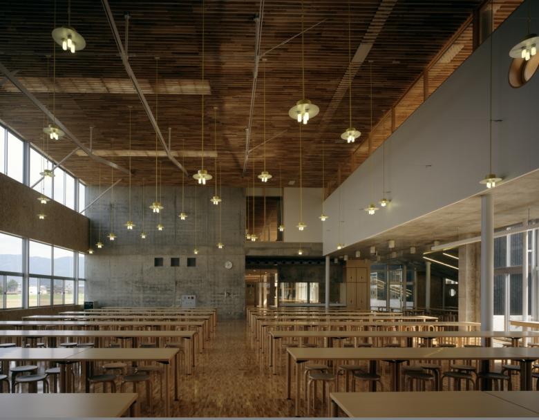 This new junior high school is located in a rural district. The school is run using the “subject-centered system", which stimulates students and fosters their independence by allowing them to move throughout the school for their classes, rather than staying in a single classroom which various teachers visit (the latter system is more common in Japan). The school consists of a grouping of subject classrooms, media spaces, and homerooms; a gym; and four courtyards, which together form a single large cluster. The media space, gym, and cafeteria are three-dimensionally linked via courtyards and voids, resulting in a series of spaces that are at once dispersed and integrated.