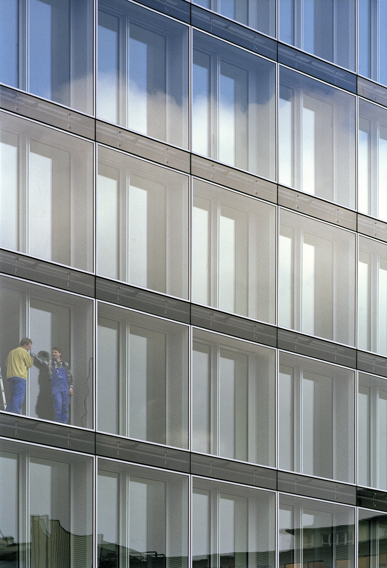 The concept of building services combined natural/ mechanical and thermal systems, with special measures for saving energy in the low-energy building standards. Massive floor slabs work in conjunction with the thermal buffer function of the cell façade and a system of natural ventilation with overnight cooling draft. Heat recovery Systems combined with free cooling systems and use of the sprinkler tank as a buffer storage device for heat and cold create a highly energy-efficient system of heating and cooling the building. The system works computer-controlled.