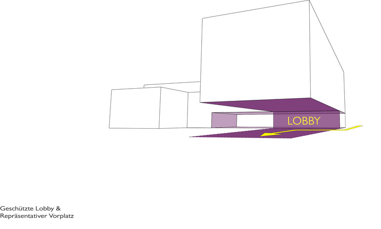 The façade as accent – The hotel encloses the square shaped property on three sides. The 164 guest rooms and additional spaces are combined by design into a compact, partly pending structure above a generous driveway and seamlessly connected open hotel lobby.