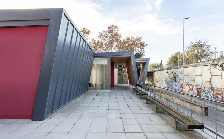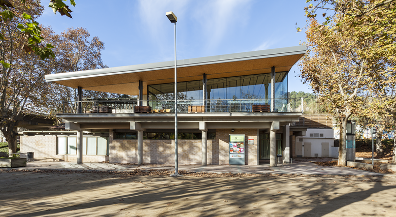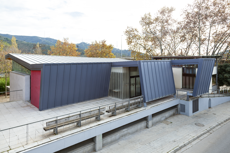 The main purpose of this project was to find a creative whilst efficient way to enlarge an existing civic centre. This was placed over the historical water mine of Montcada i Reixac municipality and could only be extended vertically. Therefore, the project was solved creating a new floor plate over the existing roof, which visually opened up to the surrounding natural environment and manage a new entrance from the back of the building. The extension was built with precast light components connecting the existing building to the new roof.