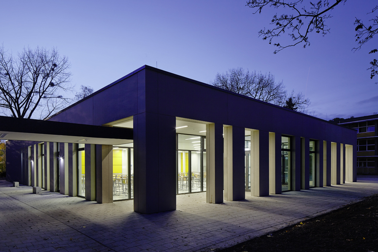 Der Neubau der Schulmensa auf dem Gelände der Katharina-Henoth-Gesamtschule in Köln-Höhenberg ersetzt den kleineren Altbau am selben Ort. Eingebettet in die Grünanlagen der Schule zeigt sich die Schulmensa als Solitär, der sich an den Gebäudekanten der Aula orientiert und maßvolle Außenräume zu den bestehenden Gebäudeflanken definiert.