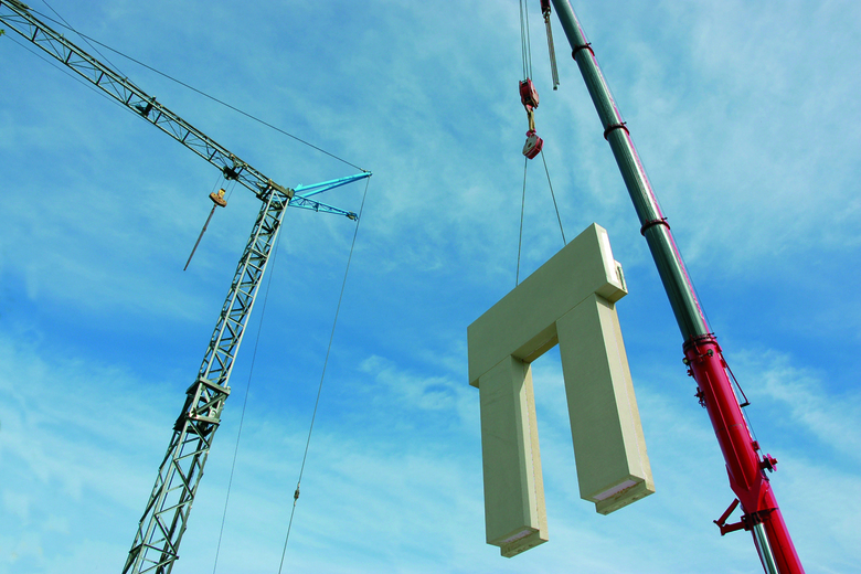 Die Konstruktion des Gebäudes erfolgte in Massivbauweise aus Stahlbeton. Die tragende Gebäudehülle besteht aus Sichtbeton-Fertigteil-Sandwichelementen. Die Beton-Sandwichelemente setzen sich aus einer äußeren Betonschale, Kerndämmung und einer tragenden Betoninnenschale zusammen. Dafür wurde ein 52 cm starkes Sandwichelement mit Trag-, Vorsatzschale und Dämmung in einem Arbeitsgang erstellt.