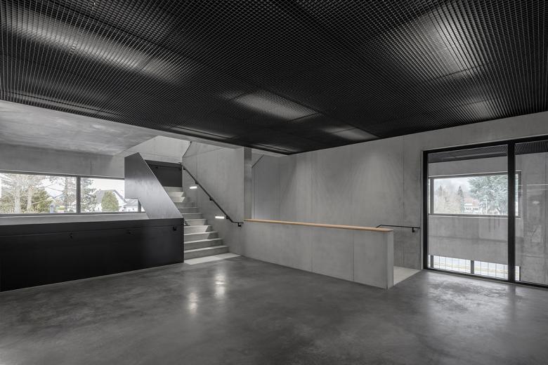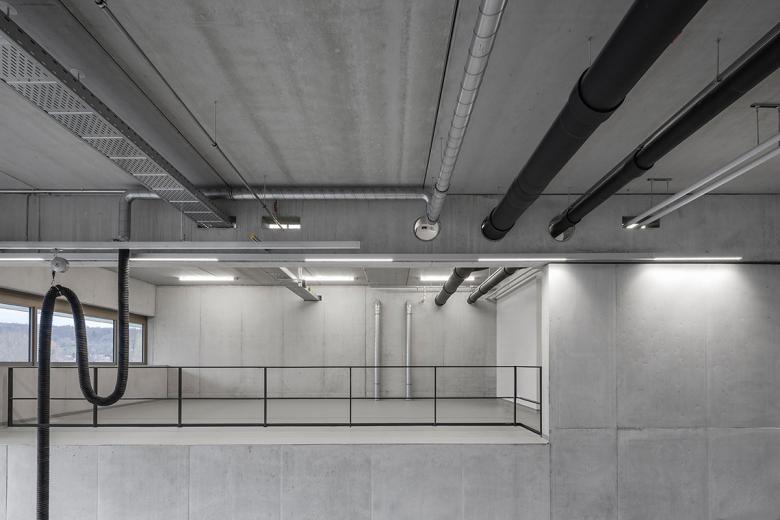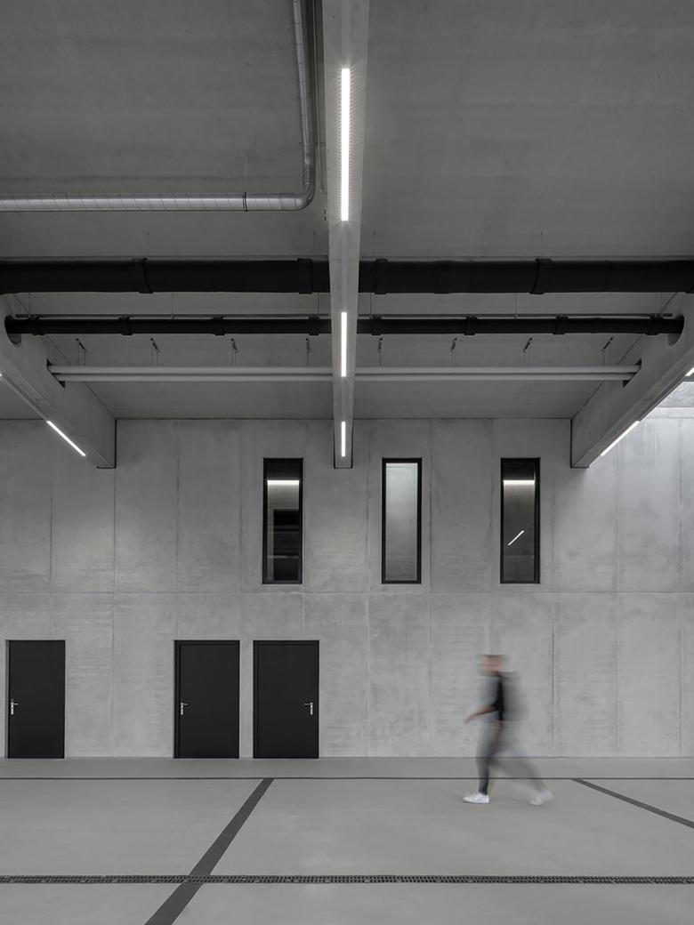 Technik- und Werkstattbereiche sind im Erdgeschoss an die Fahrzeughalle angelagert. Bereitschaft, Schulung, Jugend- und Büroräume befinden sich in den Obergeschossen.