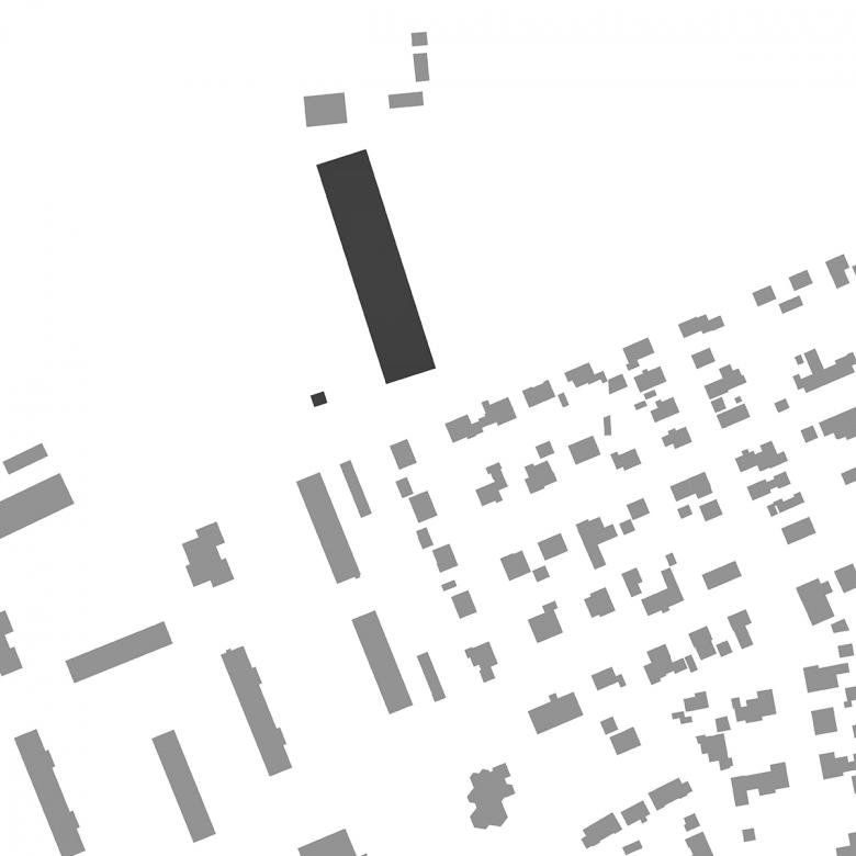 Das zentrale Feuerwehrgerätehaus fügt sich in der Längsorientierung der Umgebungsbebauung ein und setzt mit einem Hochpunkt am Kopfende ein gut erkennbares Zeichen am Stadteingang. Der größtenteils zweigeschossige Baukörper umschließt die Fahrzeughalle u-förmig. Der 23 m hohe Übungsturm ist vom Hauptgebäude abgerückt und ist schon von Weitem sichtbar.