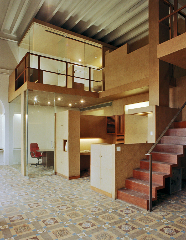 This office is located in a majestic two-hundred-year old building in the heritage Fort precinct of Mumbai. Its design expresses a poetic tryst between the old and new.