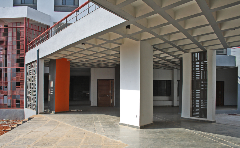 The School of Sciences has been designed to house multiple post-graduate departments of science with teaching and research facilities. The success of the building lies in its control of scale and the complexity of spaces achieved while beginning from a logical analysis of program. The organization allows for tremendous flexibility of function while taking into account the climatic factors and maximizing indirect natural light and minimizing direct exposure to the scorching sun.