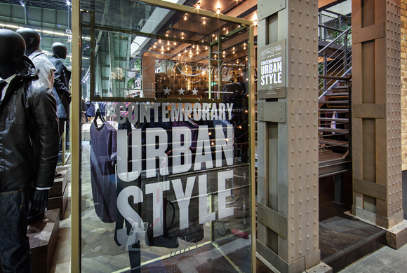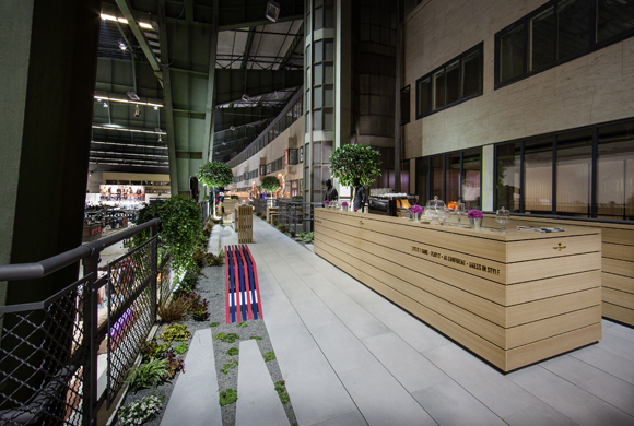 The concept of the presentation is based on the philosophy of the High Line in New York. This refers to the now defunct elevated railway line which once linked to the Meatpacking District in Manhattan. Over the last few years, the area has been re-designed to create a lively park above the rooftops of the town which is popular with New Yorkers and tourists alike. Visitors to Tom Tailor space were also treated to a taste of this urban American zest for life and were able to experience a stroll through the ‘urban jungle’ of New York. The key materials used in the stand include steel from the High Line and its plants, brick, wood, brass and leather features.