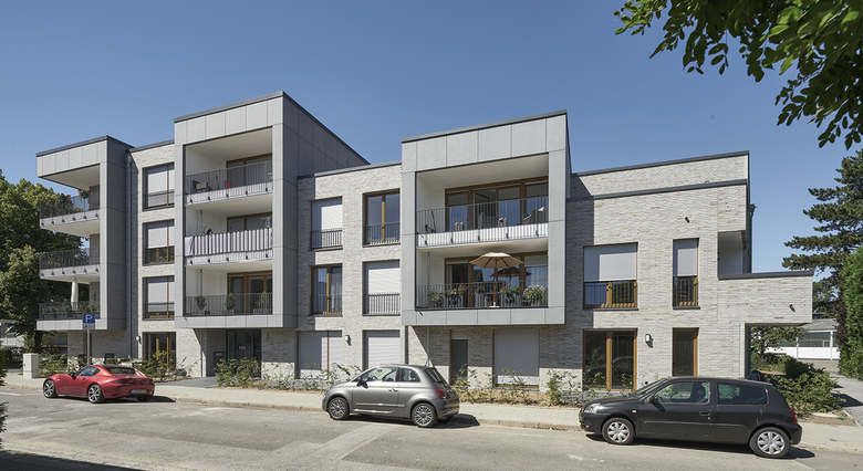 In zentraler Lage sind hier zwölf Wohnungen unterschiedlicher Größen entstanden, die sämtlich auch von der Tiefgarage aus per Aufzug barrierefrei erreichbar sind. Vom 2-Zimmer-Appartement bis zur 4-Zimmer-Wohnung mit zwei Bädern und Gäste-WC verfügen alle über durchgängig bodentiefe Fenster und einem eigenen Außenbereich. Auf der Hofseite steht ein Spielbereich und eine Gemeinschaftsfläche zur Verfügung.