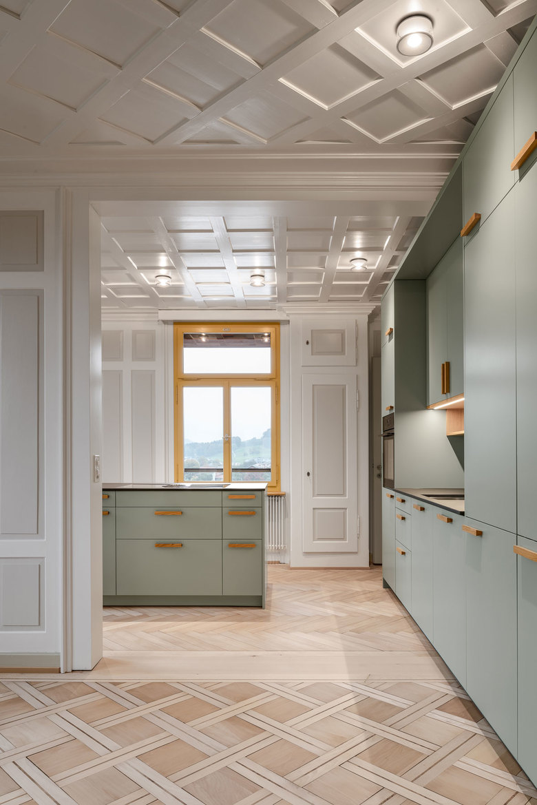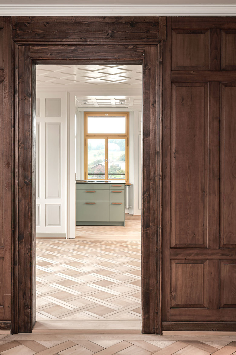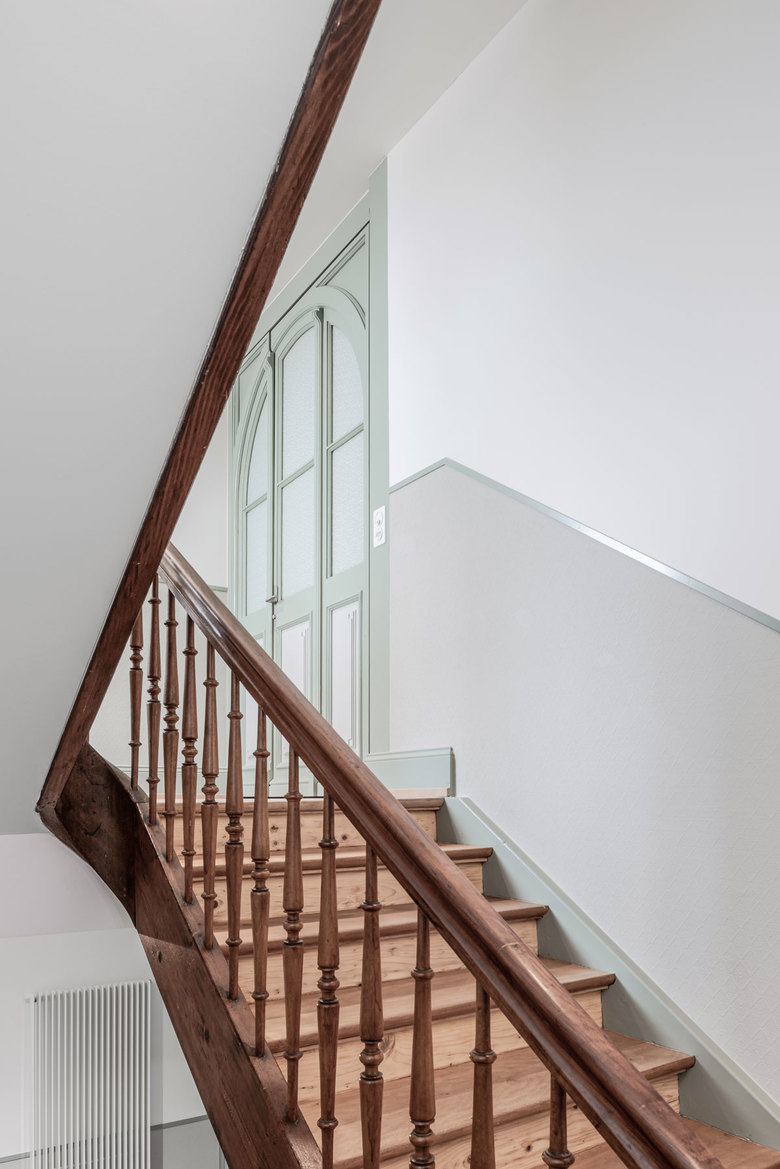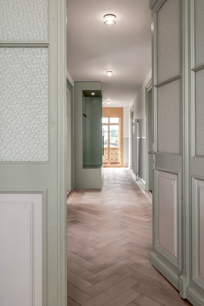 Die katholische Kirchgemeinde Abtwil beabsichtigt, das nach 1904 von August Hardegger erbaute Pfarrhaus einer umfassenden Innen- und Aussenrenovation unter denkmalpflegerischen Gesichtspunkten zu unterziehen. Die Bauherrschaft beabsichtigt, das Pfarrhaus zukünftig als reines Wohnhaus zu nutzten. Die Büroräumlichkeiten der kath. Kirchenverwaltung sollen daher neu in die heutige Mesmerwohnung integriert werden. Durch diese Nutzungsrochade können sämtliche Geschosse im Pfarrhaus genutzt und als Wohnungen ausgebaut werden. Ziel war es es, 3 seperate Wohnungen unter Einbezug des Dachraums zu realisieren.
