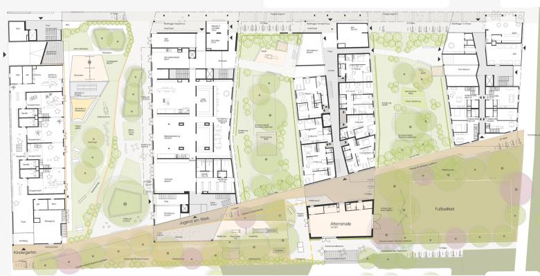 Das Projekt Fünf Freund*innen plant Luxus für alle: Leistbare geförderte Wohnungen mit Eckloggia, Flexibilität und an unterschiedliche Lebensumstände angepasste Grundrisse, gemeinsame Infrastruktur wie Gemeinschaftsräume, grüne Innenhöfe, Fußballfeld, Waschküche und Fahrradwerkstatt und natürlich ein Schwimmbad am Dach!