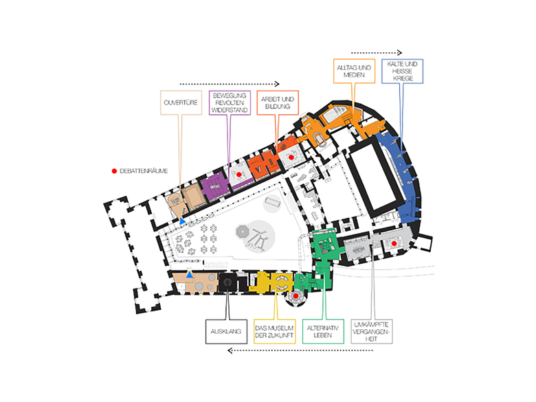 Chapter of the exhibition: Work and education for everyone! Promises and breaks in the welfare state Everything must change! Movements, revolts, resistance It’s showtime! Daily life and the media Austria, island of bliss. Of cold and hot wars Break what breaks you! Contested pasts and Nazi continuities The personal is political, the political is personal! Alternative living *Museum for everyone! Exhibition utopias and the Museum of the Future