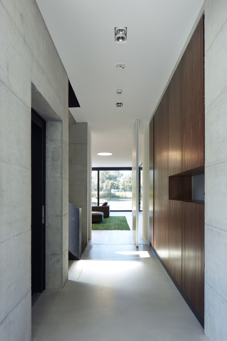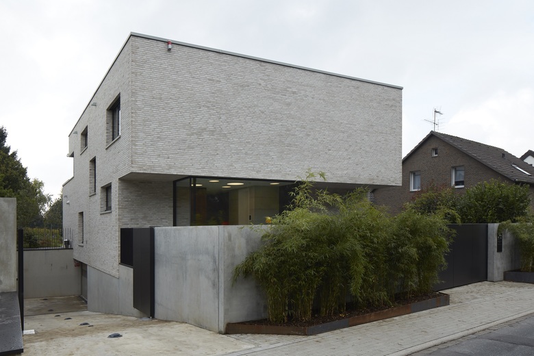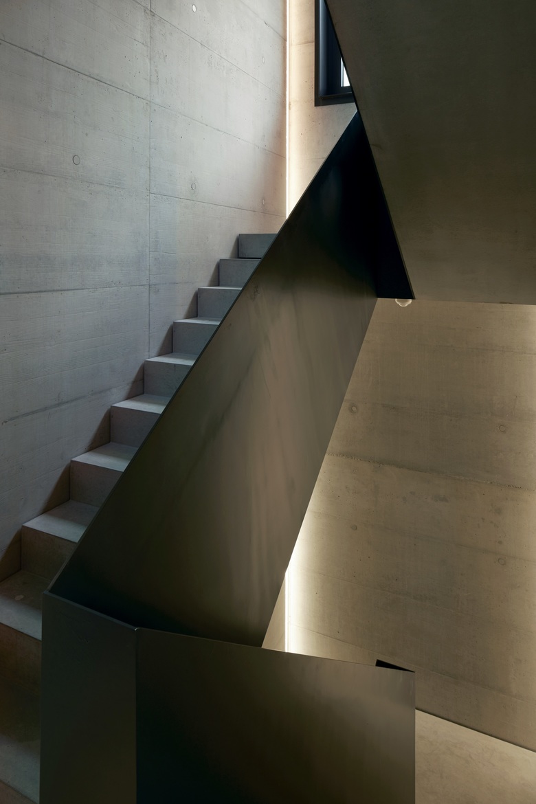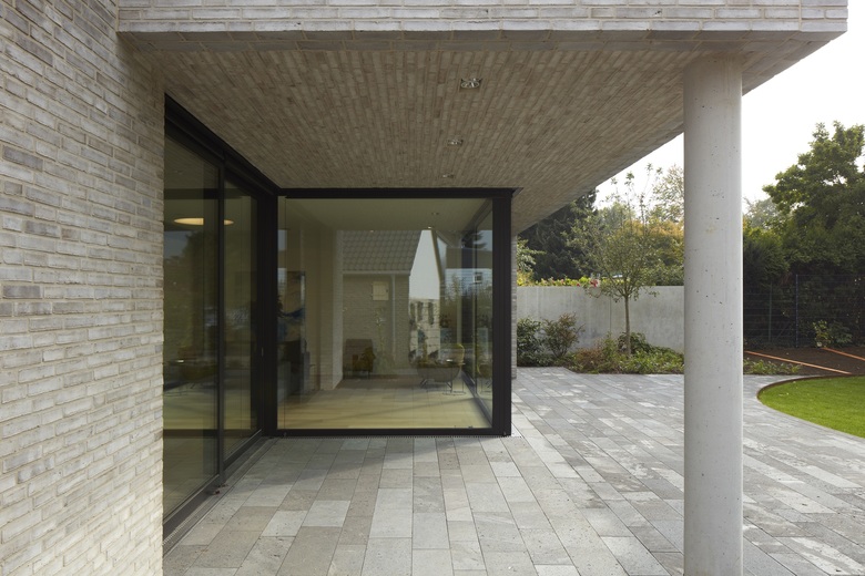 A compact edifice with bulky projections and offsets make for covered entrances and exits, terraces and a pergola looking towards the garden. An open and seamless ground floor creates accessibility and spaciousness, while an upper floor in classic arrangement provides the necessary intimacy for residents.