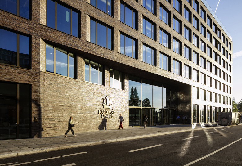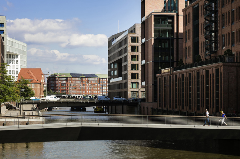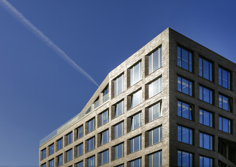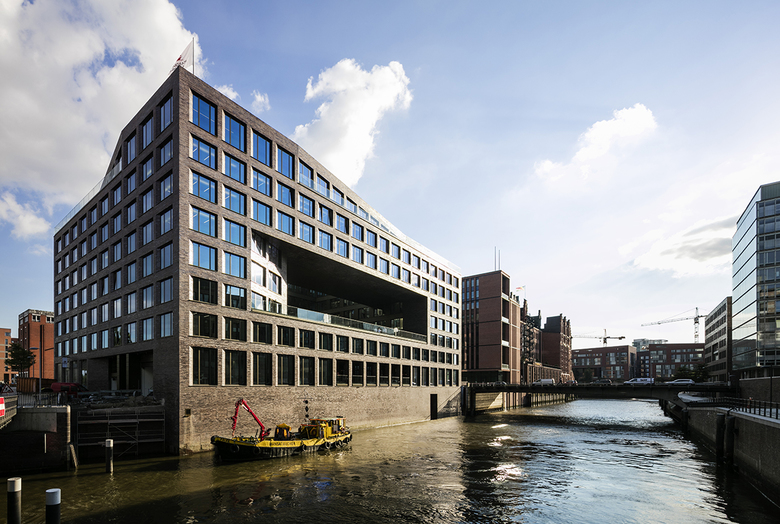 The international energy trading company Marquard & Bahls is planning their new headquarters on one of the last remaining plots of the HafenCity Hamburg area. The 75m long and 41m wide plot is located between the “Ericusbrückenzufahrt” on the Eastside, Koreastraße in the South, Shanghaiallee on its Westside and Brooktorhafen in the North. A calm and high-quality appearance characterizes the brick building. The orthogonal cubature of the design follows the building lines of the existing and planned surrounding and forms a self-confident landmark with its eight stories high massing. To achieve a visual contact to the waterfront and the characteristic location of the building for the inner courtyard area, a large opening in the north façade – the “city balcony” – is provided. A staggered sevens floor level at the Northeast corner forms the dramatic high point of the building. This high point defines the counterpart to the exposed “Spiegel” building and forms the end point of the building alignment of Brookhafen and Lohseparks.