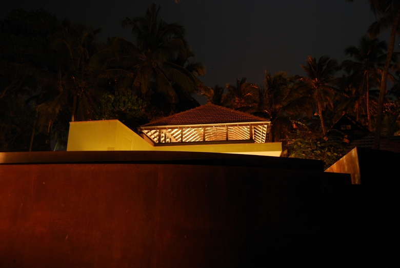 Aqua house deals with contemporary urban nomadic living conditions and the overwhelming landscape of Goa. The processes are further influenced by the predominant Portuguese house-form with its intriguing intricacies of lives beneath a single roof, and the location. The site forms a threshold: between the village and the beach and between social mooring and vagrancy – Anjuna being the cradle of the Hippy culture. The key-word here is in-between-ness: of site – it’s physical and cultural position; of the principle participants – neither the architect nor the clients being residents but frequent visitors to Goa, and habitual travellers in their own right; and of the program – a home away from home, not complete yet adequate. Vacations and pilgrimage attend to the need for a break from the binding matrix of society. By moving away from familiarity, or enduring hardships, one exposes the body and mind to all elements and opens out to receive more. In essence, one seeks a state of trance to rearrange; and this state is, necessarily, impermanent; so one may not break away but return replenished – to offer.