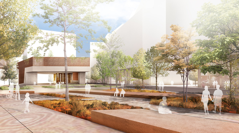 The Australian continent has a strong bond to its diversified nature and is moving along as strong in new and sustainable technologies. The history of both, the ancient indigenous Australians and its new population are the cornerstones of  the Australian society today. This diversity of the authentic and new society are the base for building and plaza. The ground level, the city level represents the new green and sustainable Australia, the public roof park of the Green Square Library is the Dreamtime Park.