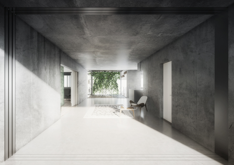 Die Lage der Wohnungen innerhalb des Blockrands, ist auf die optimaler Belich¬tung mit natürlichem Tageslicht ausgelegt. Die Traufkante wiederum suggeriert eine Horizontalität, die die Aussenkante des Blockrands zum Kontext dialogisiert.
